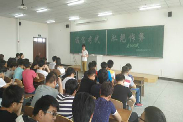 最后,辅导员助理赵子玉老师进行了总结发言,她警醒同学们不可一时糊涂,要在考前认真复习,增强诚信考试的意识,特别是学生干部、党员和入党积极分子更要起到模范带头作用,对违纪现象要敢于做斗争。号召全体同学杜绝各种考试舞弊行为,并就最近即将到来的英语四六级考试对同学们提出鼓励,祝愿所有同学能在一个公平、公正的考试环境中取得优异的成绩!