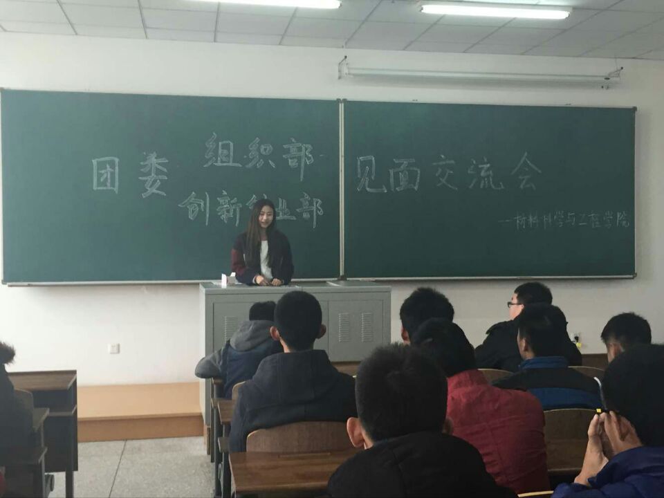 新闻网讯(通讯员:王琪瑛)为了让15级新生更好的融入大学生活和了解团委,材料科学与工程学院团委与11月15日上午10点在北湖校区主楼609举行了见面交流会。学院团委副书记陈宇畅、团委常委王鸿儒、组织部部长白洋、创新创业部部长孙海燕作为嘉宾出席本次活动。