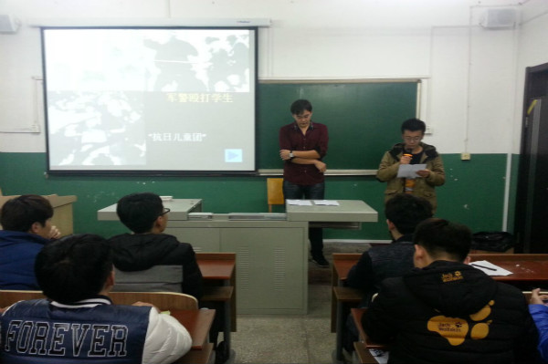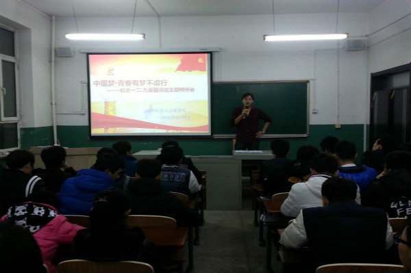 活动伊始,全体同学面对国旗,唱响国歌,铿锵有力的歌声汇成最坚定的信念。接着,王有维就一二·九运动的相关历史背景做了升入浅出的讲解。并展示了历史照片,播放了一二·九运动的短片,澎湃的爱国情怀在同学们心中回荡。王有维激励我们,矢志成才报国,弘扬爱国精神,勤奋学习,奋发图强。阐述了一二·九运动与新世纪“弘扬中国梦”的息息相关性。中国梦是实现国家富强、民族复兴、人民幸福的重要前提。同学们在这和平年代享受美好生活的时候,不能忘记80年前北平青年学生阐述帝国主义的侵略,在共产党领导下举行的爱国运动,而80年后的今天,中国正走在实现中华民族复兴的中国梦的光明大道上。