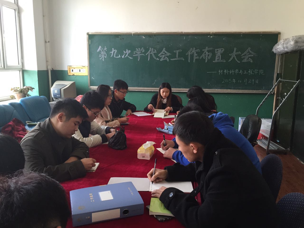 新闻网讯(通讯员:张德旭)经学校团委要求,材料科学与工程学院于10月 29日,召开第九次学生代表大会工作布置大会。会议由团委副书记陈宇畅主持,学生会主席袁佳志、社团联合会主席佟永明及部分14级学生干部参加。