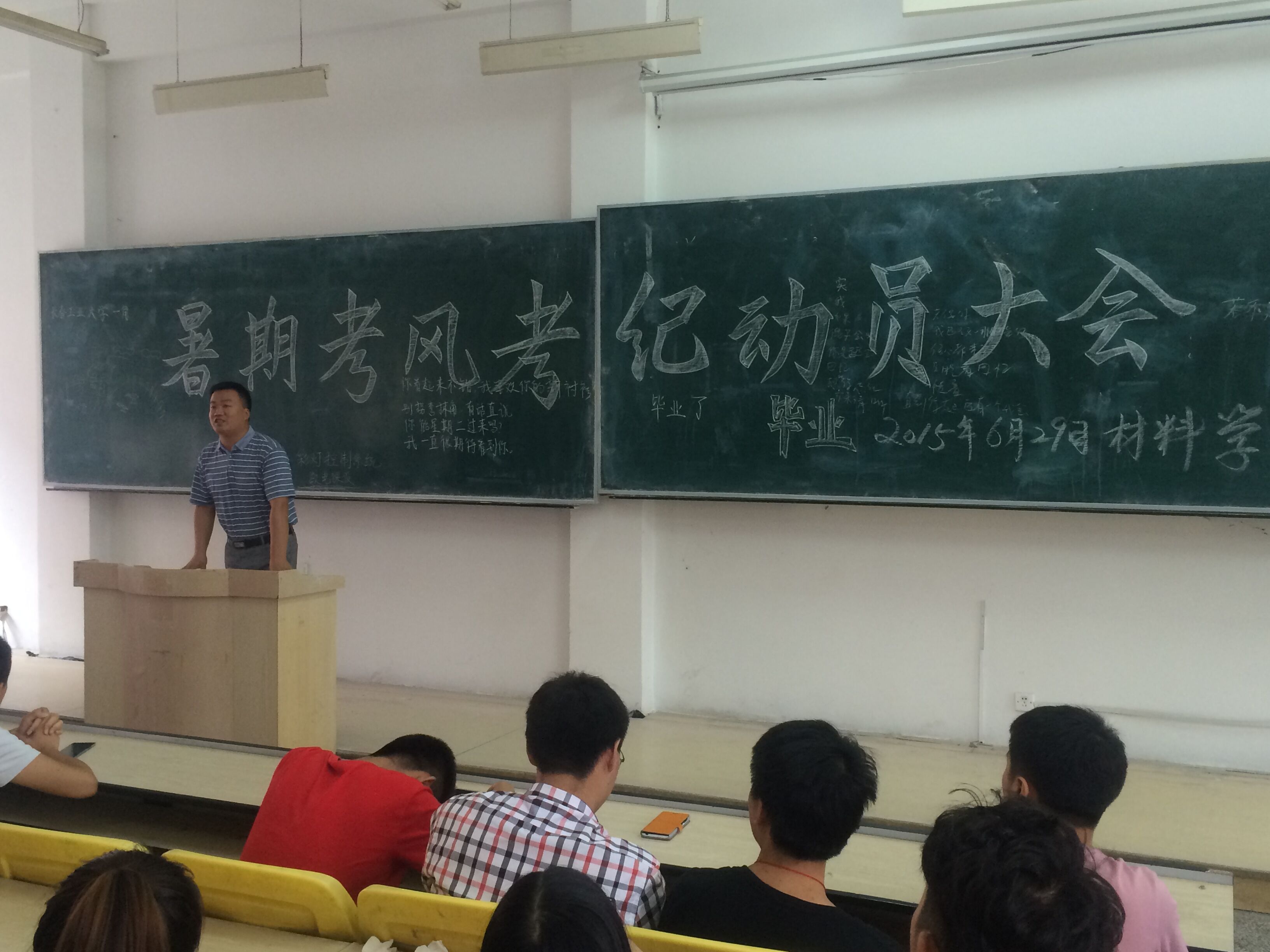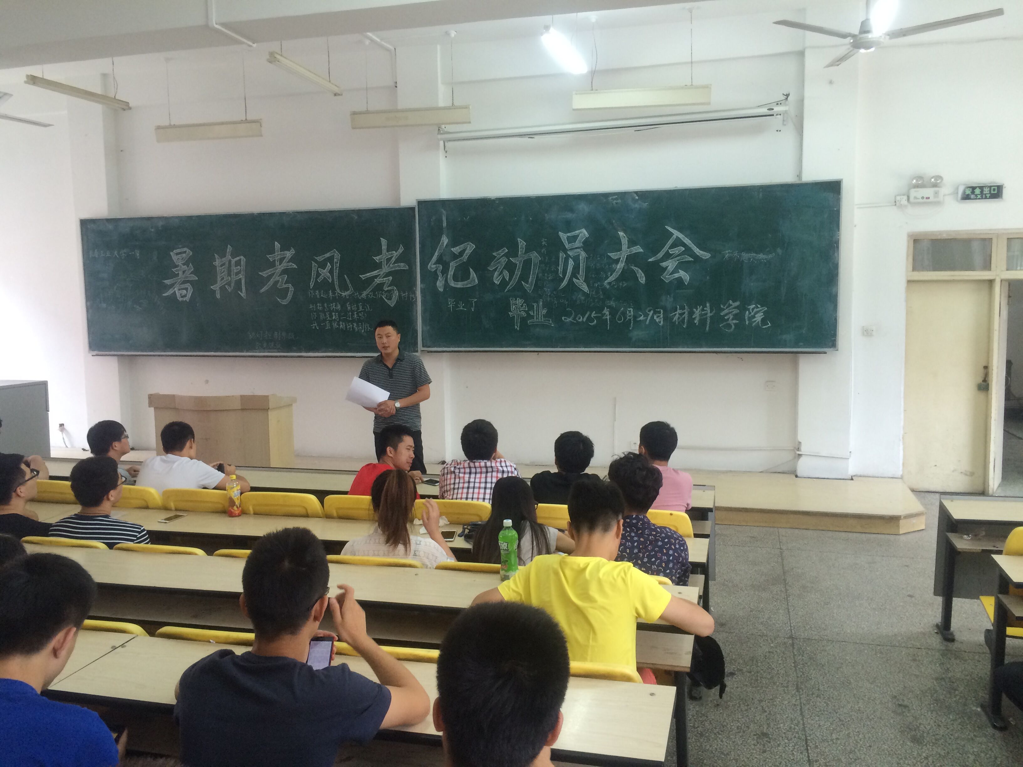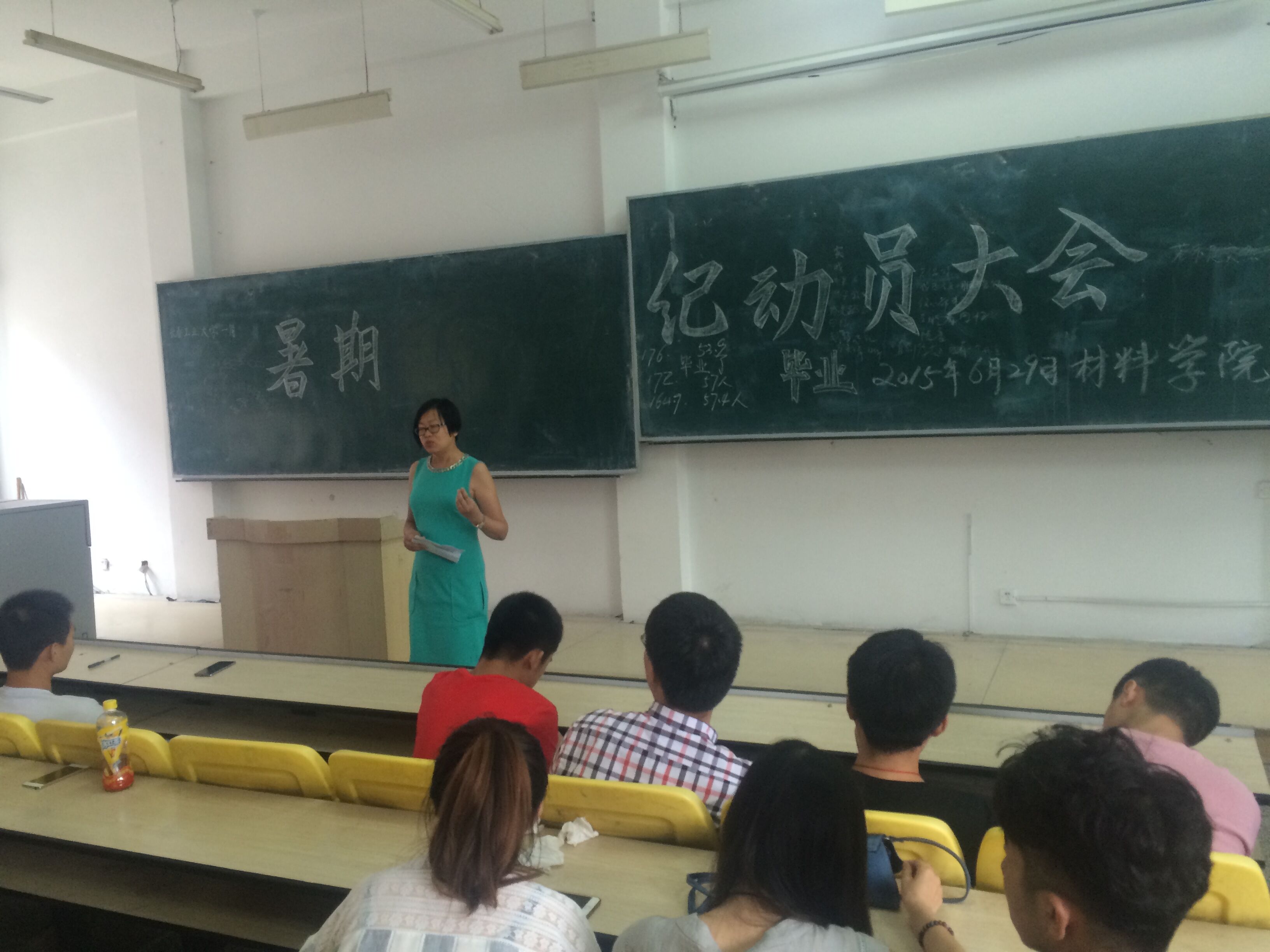新闻网讯(通讯员:张德旭)为了引导学生正确的前行方向,进一步使同学们规划出适合自己的人生道路,2015年7月3日,材料科学与工程学院在综合一举行2012级就业、考研指导会,研究生学生党委副书记郭志伟、材料学院院长冉旭、党委副书记吴文东及2012级全体学生参加会议,会议由团委书记邹绍岩主持。
