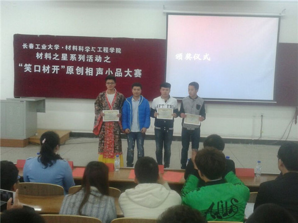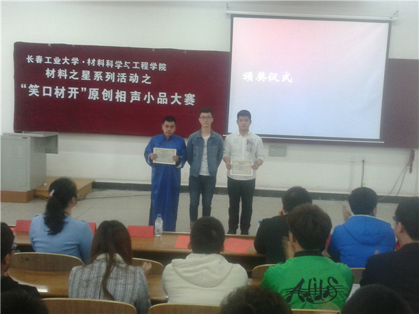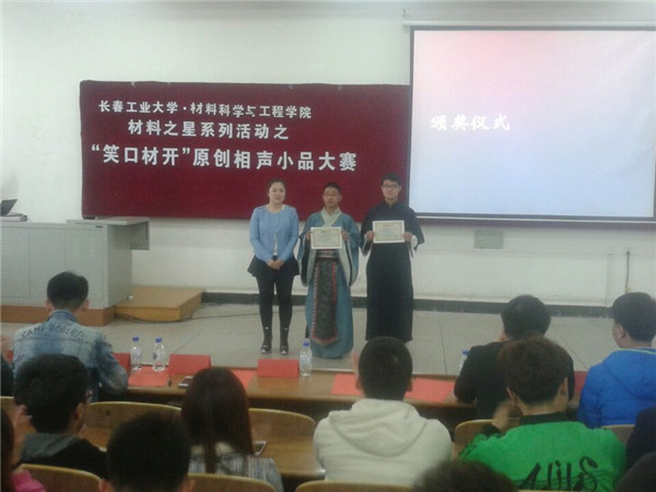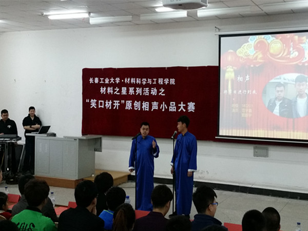 材料之星系列活动之“笑口材开”原创相声小品大赛的顺利举行,为爱好创作或表演相声小品的同学提供了一个展示自我的平台,同时也锻炼了自己的临场应对和表演能力,为今后的舞台表演增加了宝贵的经验的同时也为自己的大学生活增添了靓丽的一笔。